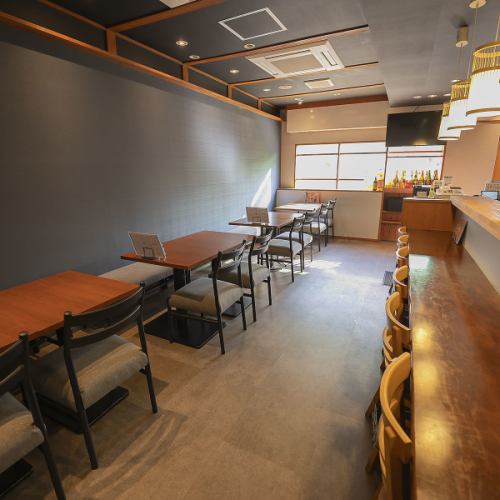 お一人様から少人数まで気軽に過ごせるスッキリとした落ち着いた店内空間♪テーブル席は柔らかな照明と紺基調の配色でまとめ、静かに会話を楽しみたい方にぴったり◎リラックスできる雰囲気を重視しているため、日常使いや仕事帰りにも最適な時間が過ごせます。住宅街にあるのでご家族でのご来店も大歓迎です◎